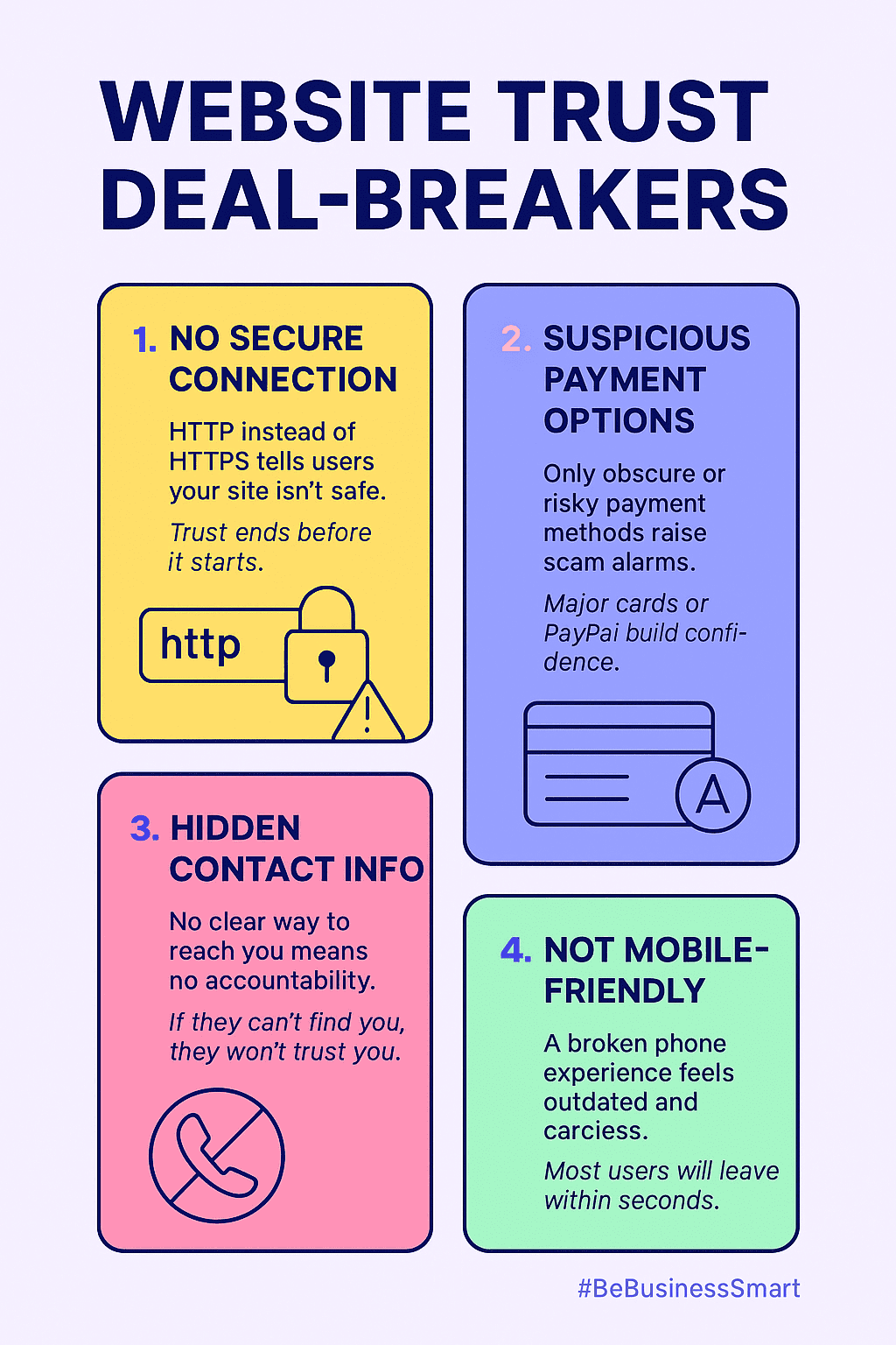 Discover the 4 biggest website trust-killers in 2025 that drive potential clients away in seconds — and learn quick fixes to protect your credibility and sales.